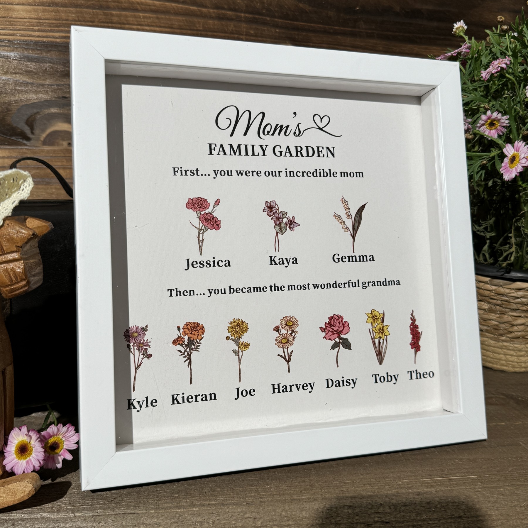 Custom Family Garden Birth Flower Frame With Grandchildren Name For Mother's Day Gift