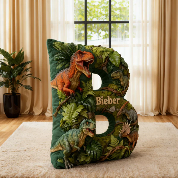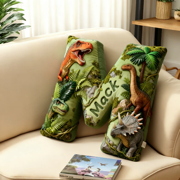 Personalized Dinosaur World Initial Graphic 3D Print Pillow with Name Christmas Gift for Kids